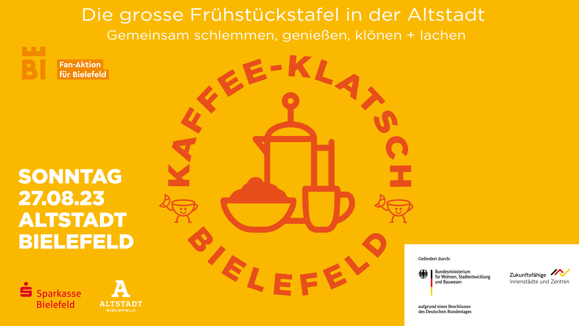 Die grosse Frühstückstafel in der Bielefelder Altstadt. Gemeinsam schlemmen, genießen, klönen und lachen.