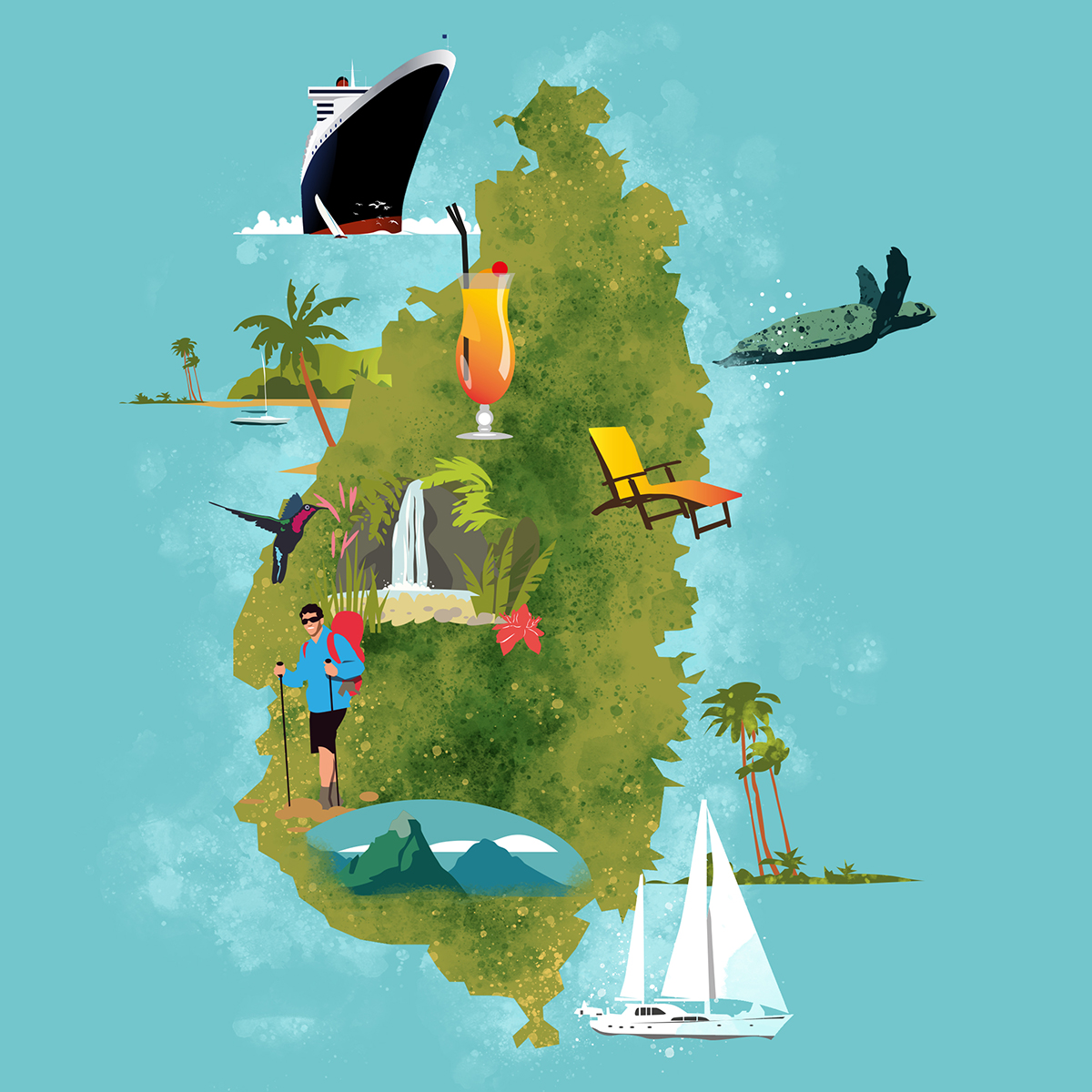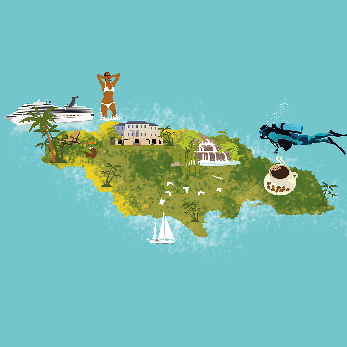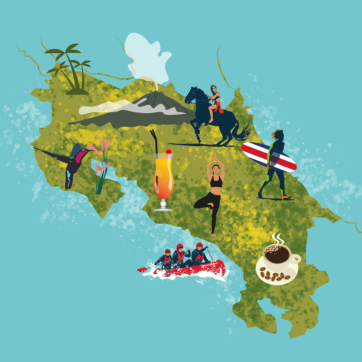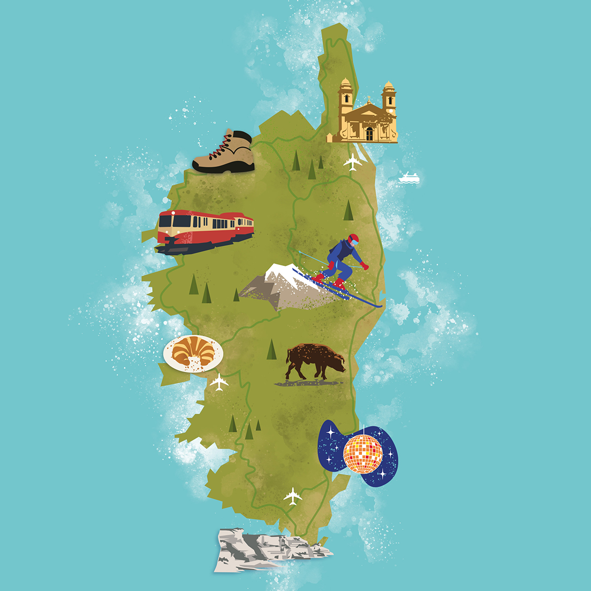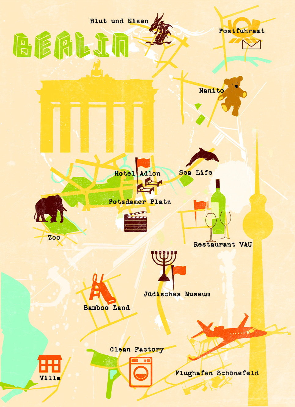 Aufmacherillustrationen für die Reisestrecke im Magazin DIE BUNTE.