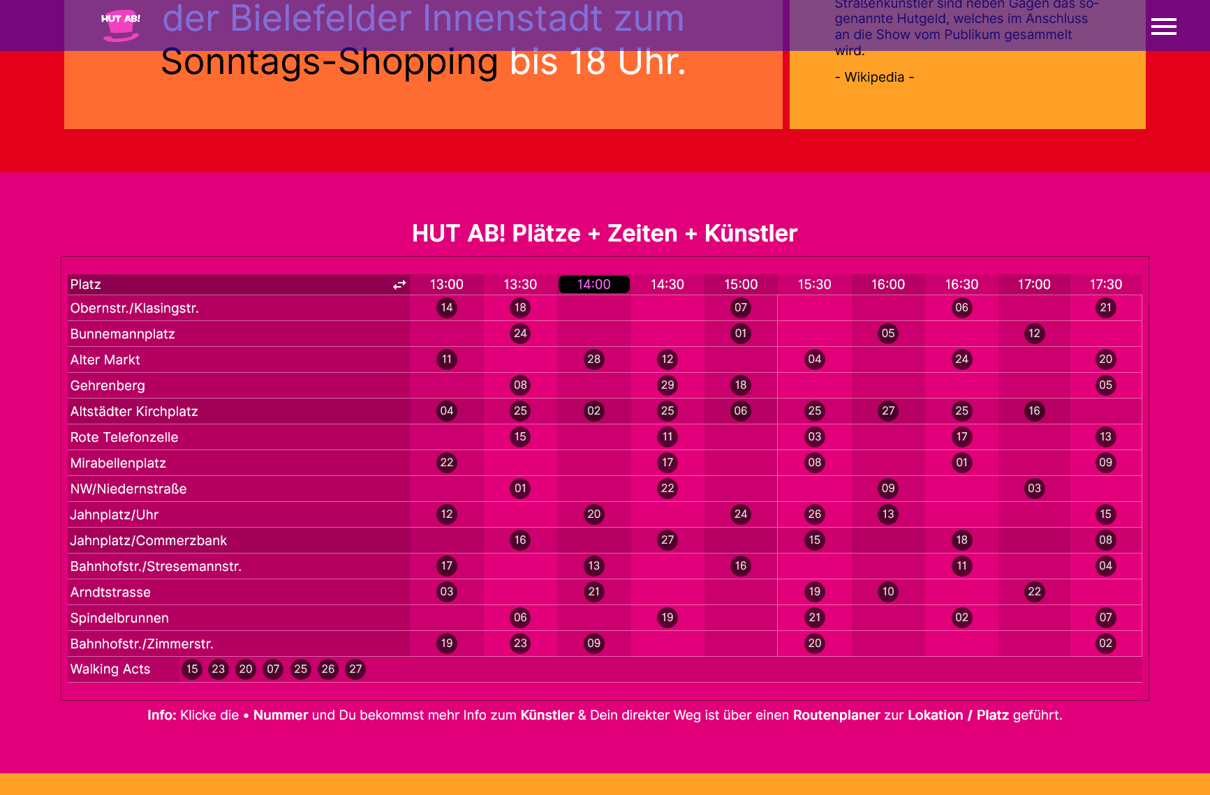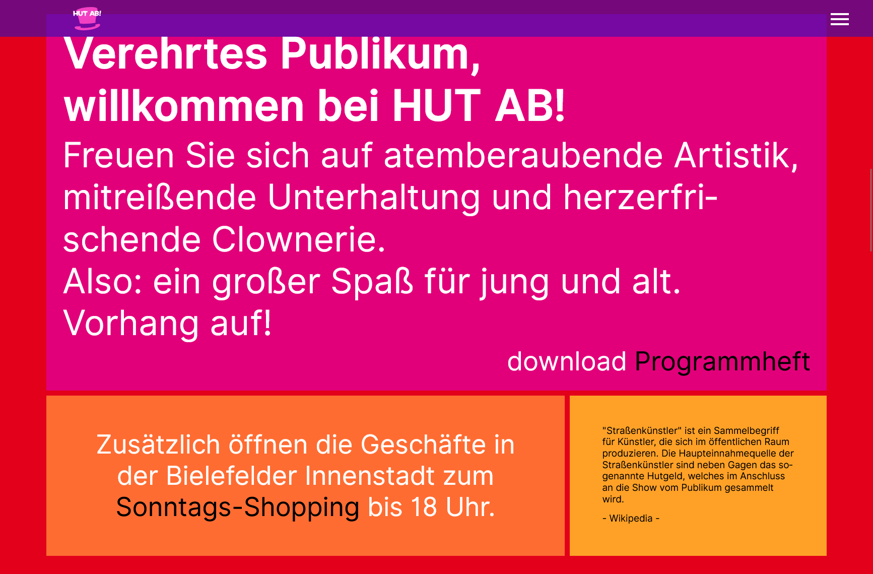 Idee, Konzeption, Corporate Design und Umsetzung in print, online und Organisation des größten Straßenkunst-Festivals Bielefelds