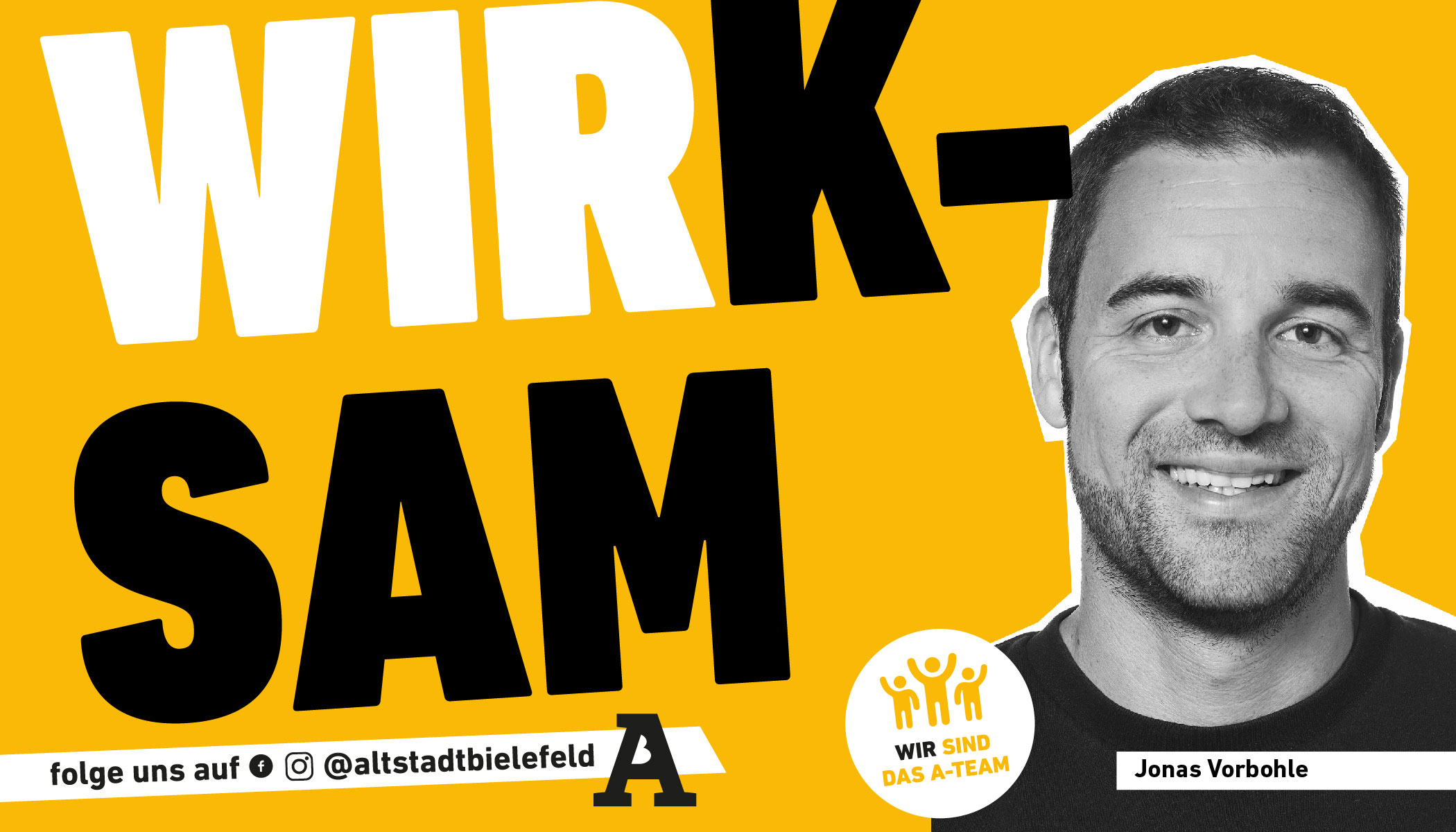 Wir entschieden uns, die Kampagne mit symbolträchtigen Wörter zu inszenieren, die mit dem ‚WIR‘ beginnen: WIR-TSCHAFT // WIR-KUNG // WIR-KLICHKEIT // WIR-KSAMKEIT // WIR-KSTOFF... Die Plakate sollten sich von den üblichen strahlenden Gesichtern und Hochglanzfotografien abheben. Daher arbeiteten wir mit der Hausfarbe und zielführender Typografie. Ergänzt durch schwarz-weiss-Portraits von Markenbotschafter*innen der Altstadt, wird daraus eine dynamische Mischung. Dieser Stil kommt konsequent auf allen Medien zum Einsatz. Ergebnis: Wirkung nach Innen wie nach Aussen. So wird schon nach kurzer Zeit bei der wachsenden Zahl an Besucher*innen Anziehungskraft und Motivation entstehen. Die Altstadt wird zum Magnet für Gemeinschaft (natürlich alles Coronakonform und zukunftsgerichtet).